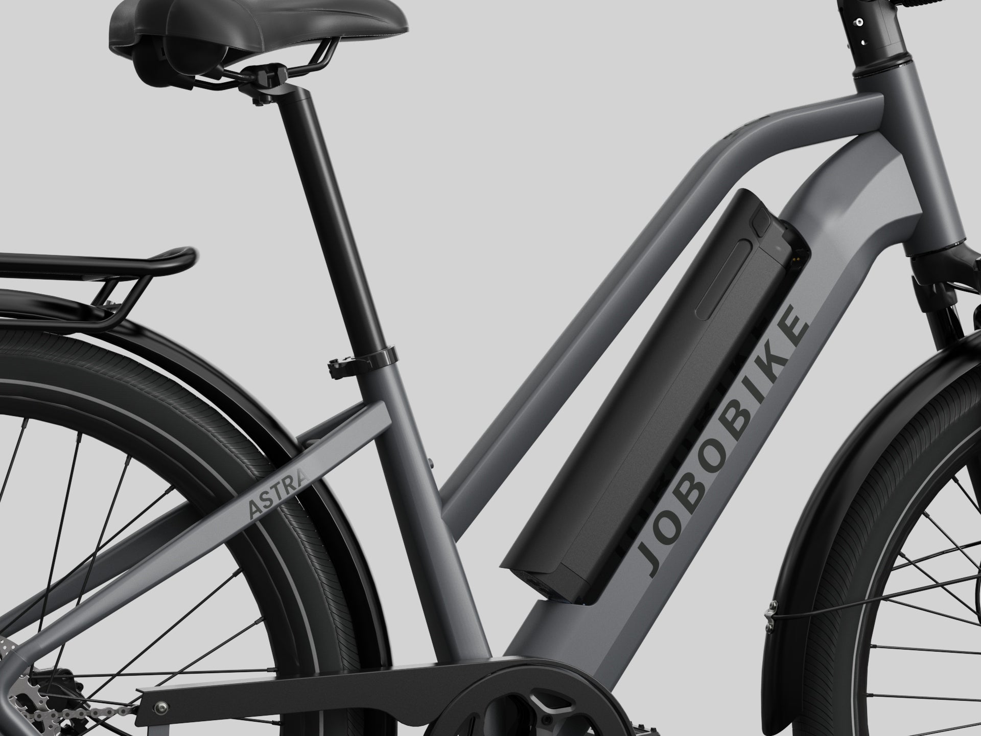 Le JOBOBIKE Astra adopte un cadre ouvert (step-through) qui facilite grandement la montée et la descente, notamment pour les femmes et les seniors.