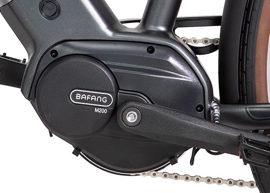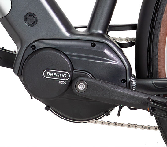 Le moteur central Bafang M200, développant un couple de 65 Nm, assure une assistance fluide, progressive et parfaitement équilibrée, pour une expérience de conduite naturelle et confortable.