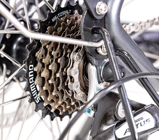 Le dérailleur Shimano 7 vitesses, conçu pour une utilisation urbaine, se distingue par sa qualité de fabrication et sa fiabilité constante, idéale pour les trajets quotidiens.