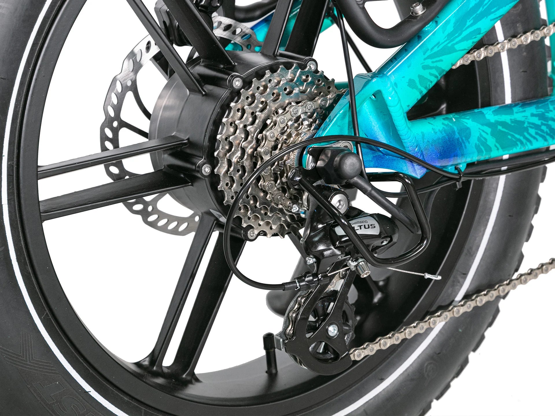 Les pneus fat renforcés 20”x4.0” offrent une adhérence maximale et une stabilité exceptionnelle, parfaitement adaptées aux terrains accidentés et aux sorties off-road.