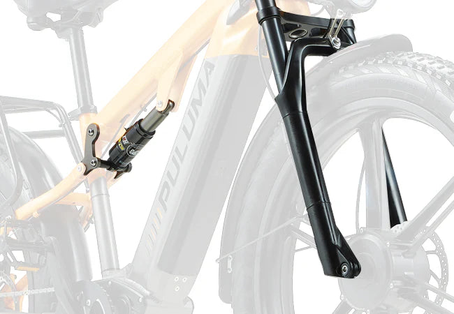 Le système de double suspension assure une conduite souple. La fourche avant intègre un système d'absorption des chocs, qui absorbe mieux les chocs et assure une conduite confortable.