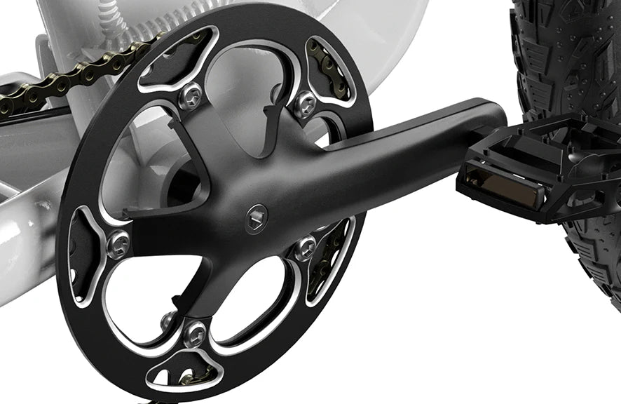Le pédalier en alliage d'aluminium, moulé CNC monobloc, offre une excellente transmission de puissance. Robuste, léger, durable, il offre une résistance axiale et une compatibilité élevées.